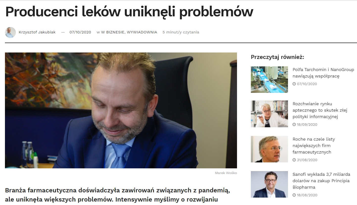 O funkcjonowaniu branży w nowych okolicznościach, a także o strategii rozwoju Polfarmex S.A. opowiada Marek Wośko, wiceprezes zarządu spółki w rozmowie z Krzysztofem Jakubiakiem dla portalu mZdrowie.pl.