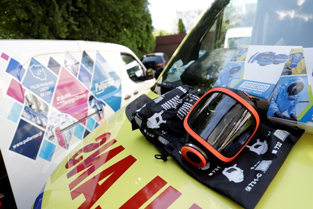 Polfarmex kolejny raz wspiera ratowników medycznych w zakresie dostarczenia im specjalistycznej odzieży ochronnej i innych środków przydatnych w codziennej pracy. W ramach przekazanych obecnie rzeczy jest 100 sztuk kombinezonów ochrony biologicznej, 30 sztuk masek pełnotwarzowych wraz z 60 filtrami, 505 sztuk przyłbic ochronnych, oraz 40 litrów mydła do dezynfekcji i 40 litrów środków na bazie alkoholu do dezynfekcji rąk.